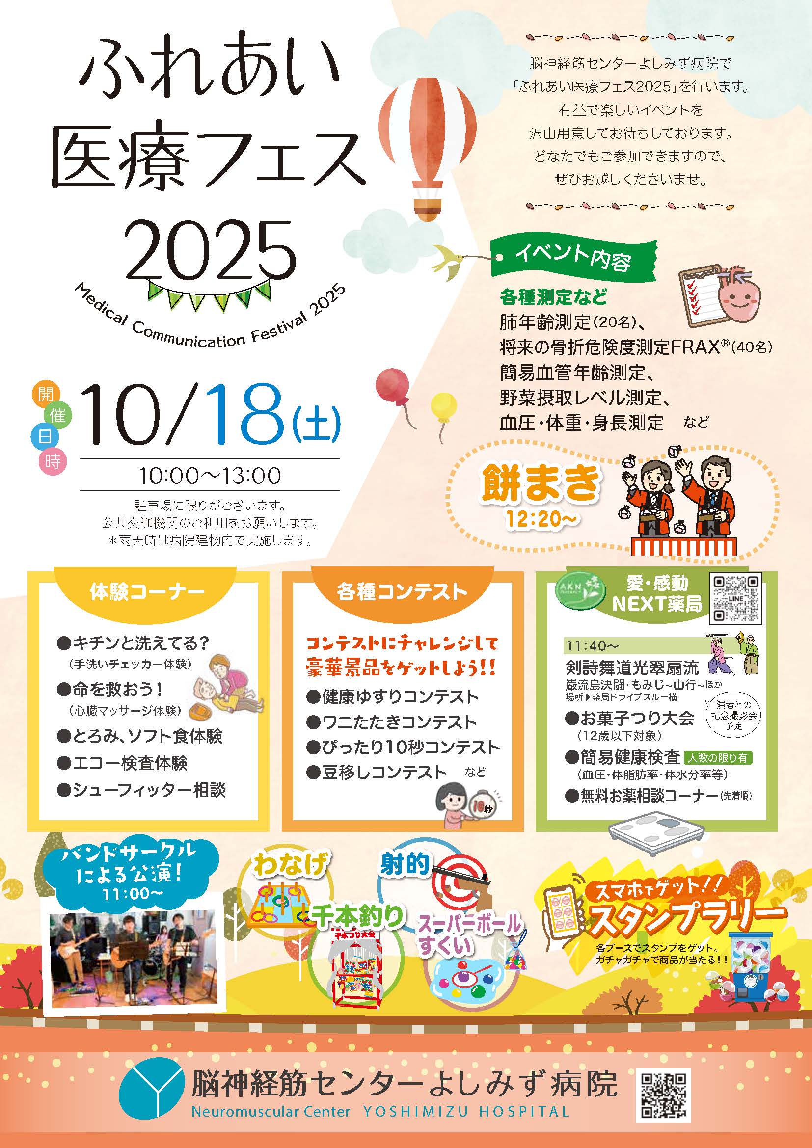 10月18日に脳神経筋センターよしみず病院にて「ふれあい医療フェス2025」を開催いたします。どなたでもご参加できますので、ぜひおこしください。